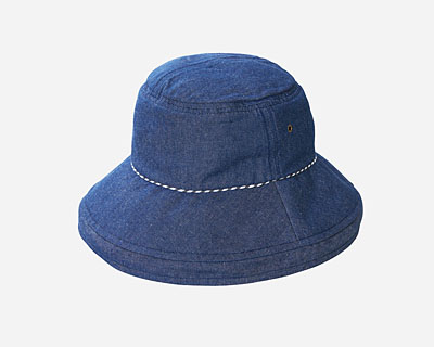 (112号)髪型ふんわりUVツバ広デニムハット ネイビー