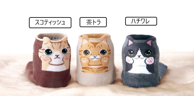 スコティッシュ、茶トラ、ハチワレの3色組です。