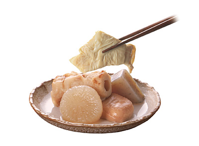 国産のたけのこ・豚肉・しいたけのシンプルな具材で ありながら、旨味溢れる味わいに仕上げております。