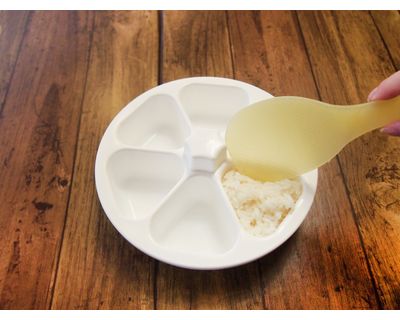 本体にご飯を入れてギュッと押すだけ!おにぎりに直接触れずに作れるので衛生的です。海苔をセットして作ると、手を汚さずに海苔巻きおにぎりが作れます。