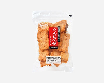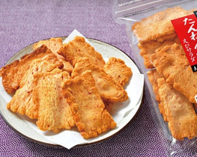 国産もち米の生地にえびをつき込んだえびおかき。サクッ とした歯ごたえ、えびの旨み、香ばしさが楽しめます。