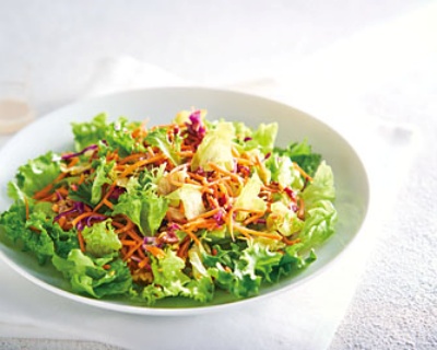 内容>葉野菜、クランベリー入りキャロットラぺ、ナッツ、熟成パルミジャーノ・レッジャーノソース