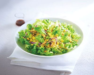 <内容>葉野菜、焼きとうもろこし、香ばし揚げごぼう、和風ガーリックドレッシング