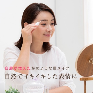 繊維を取り、眉毛を足したいところに付けるだけ。 透明ジェルが乾けば自然な眉毛の完成です。洗顔で落とせます。
