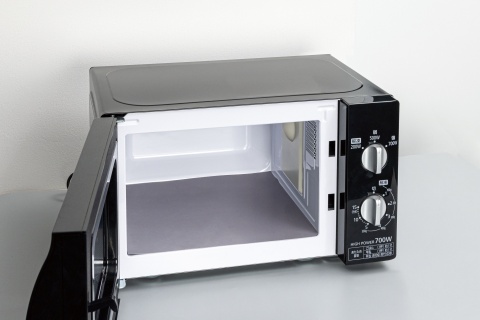 電子レンジ庫内のサイズに合わせてハサミでカットできます。黒とグレーのリバーシブル。