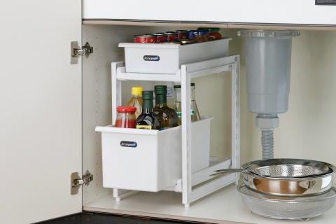 上段は調味料等の出し入れに便利なスライドストッカー。 下段は重いボトル等の出し入れに便利な深型タイプ。棚段調節が可能です。◎日本製