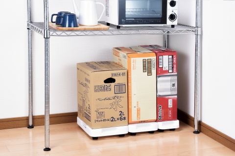 飲料水のストックや観葉植物など床に直置きしがちな物を乗せるのに最適です。